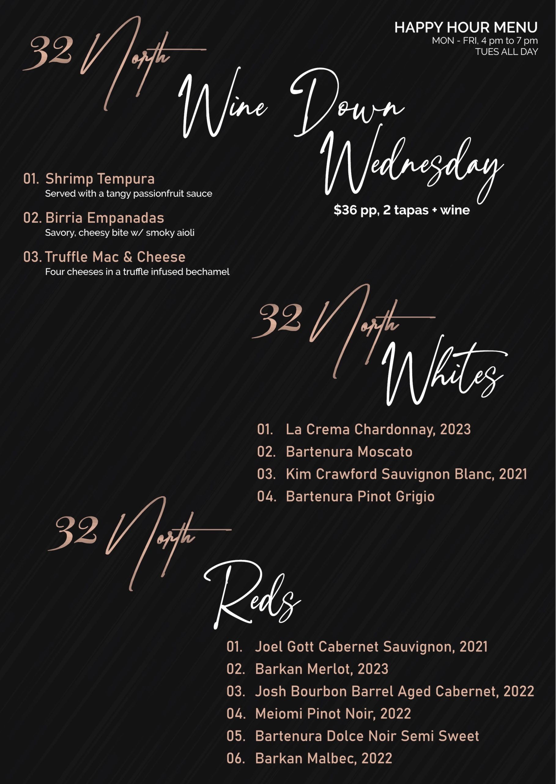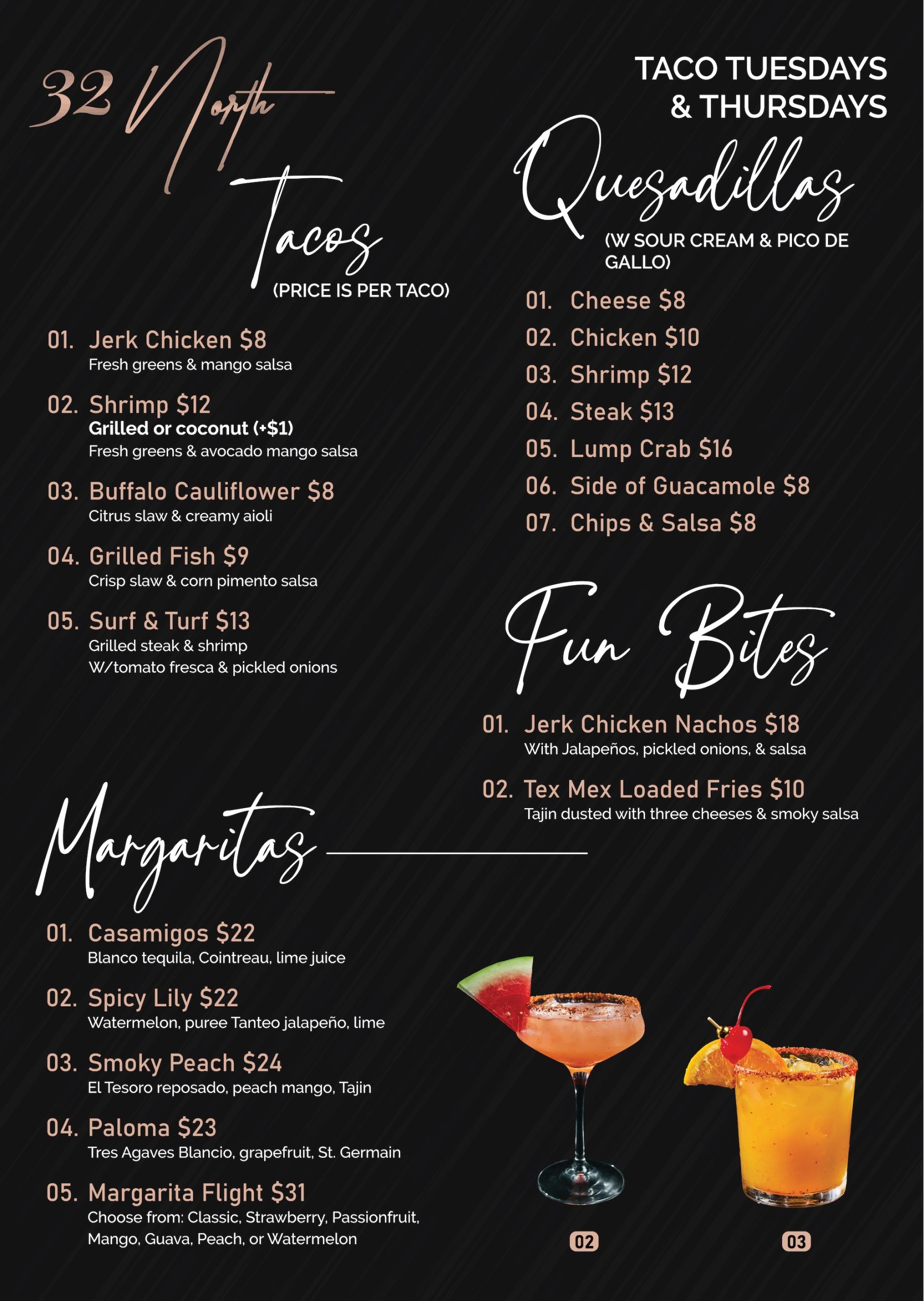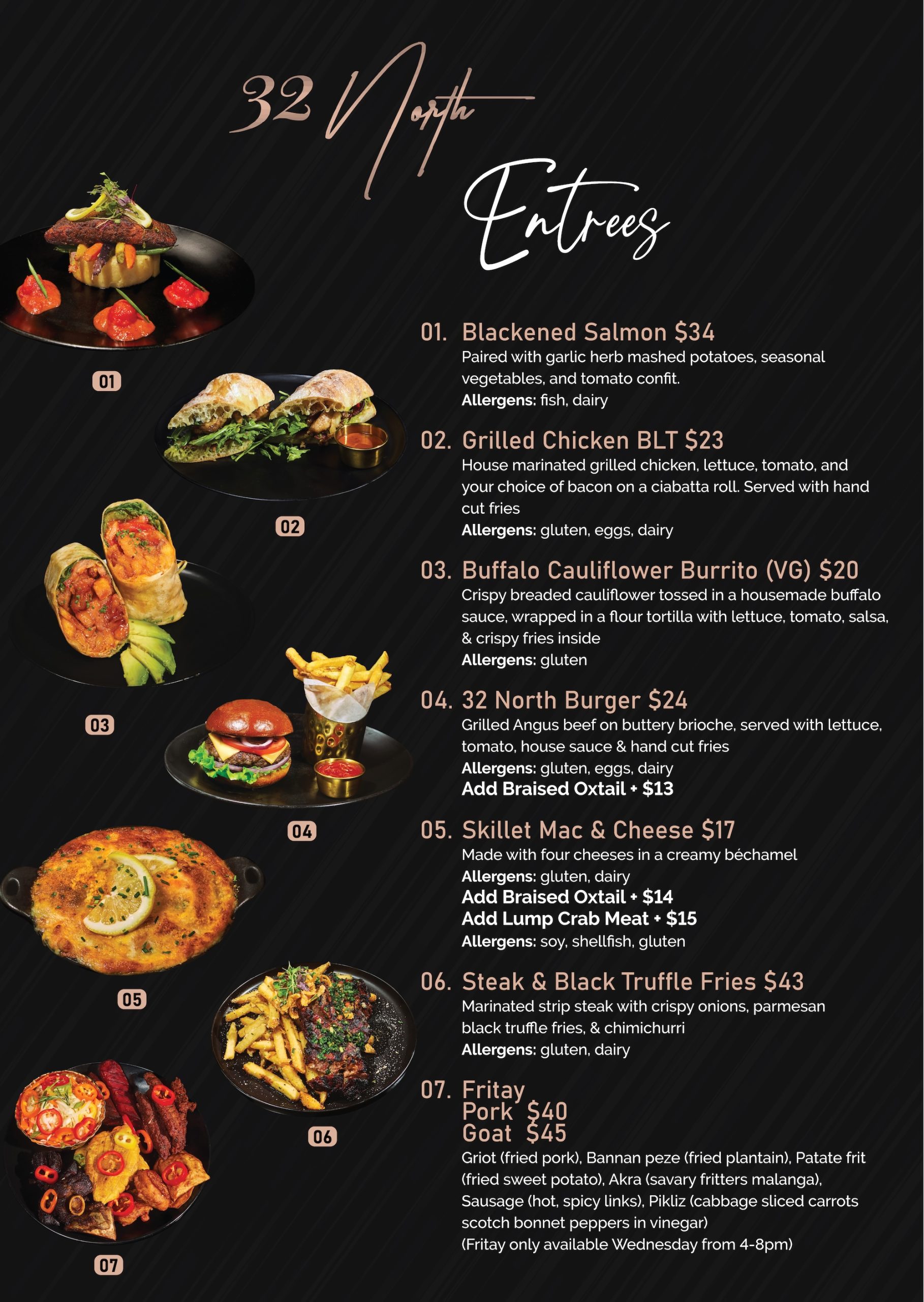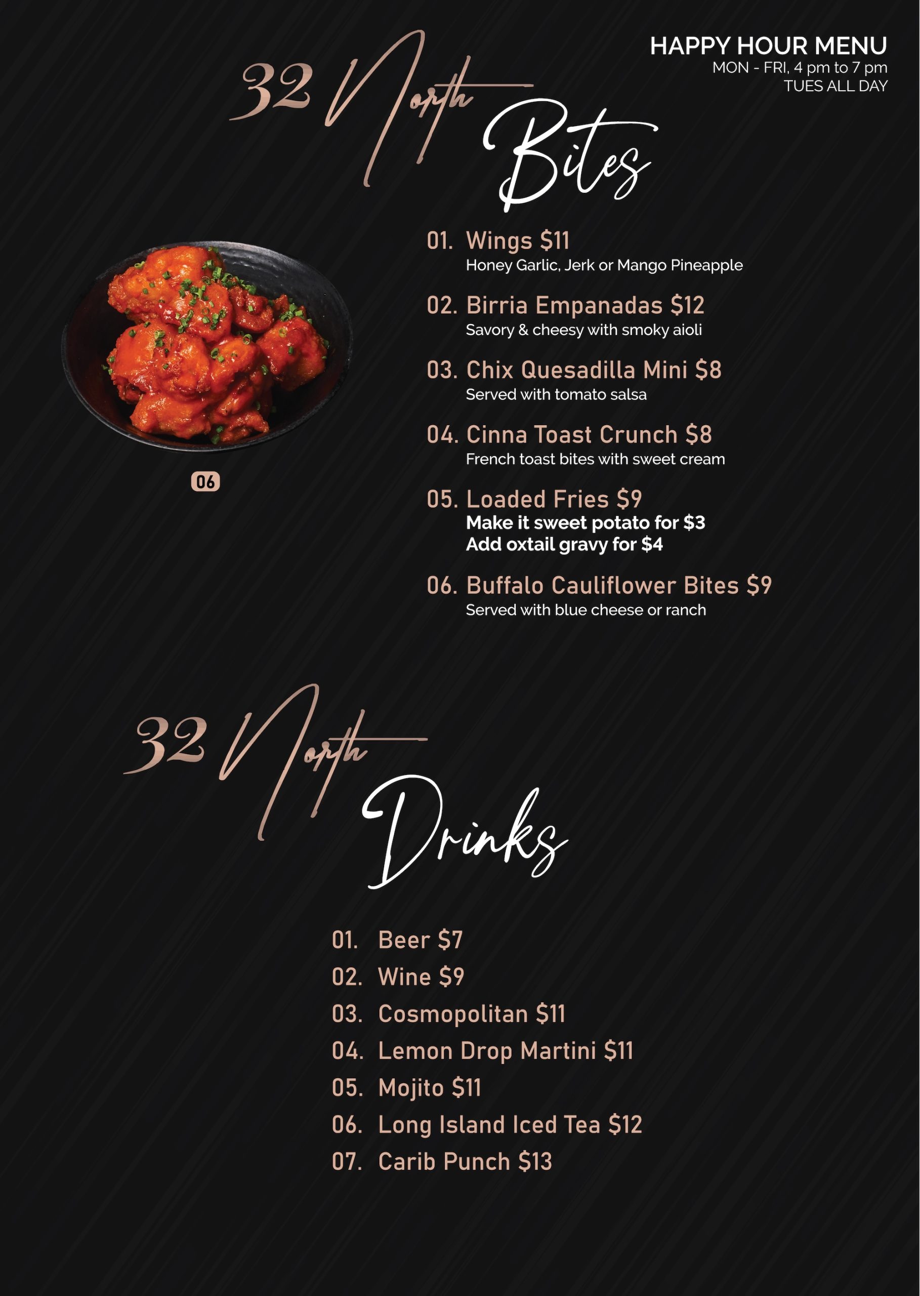 At 32 North, our menu is a celebration of flavor, quality, and creativity. From brunch classics and dinner favorites to handcrafted cocktails and refreshing mocktails, every item is thoughtfully designed to excite your senses. Whether you’re here for a leisurely brunch, an intimate dinner, or drinks with friends, you’ll find something extraordinary waiting to be discovered.
